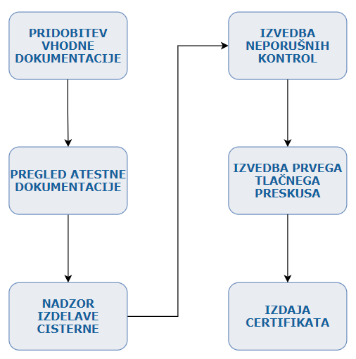 Vsi proizvajalci cistern za prevoz nevarnega blaga morajo imeti pridobljen veljaven certifikat po SIST EN ISO 3834 -2. ali 3. del, izdan s strani priznane pooblaščene institucije ter pridobljeno tipsko dovoljenje za izdelavo cisterne.