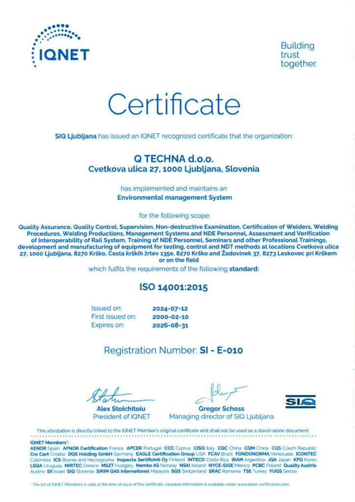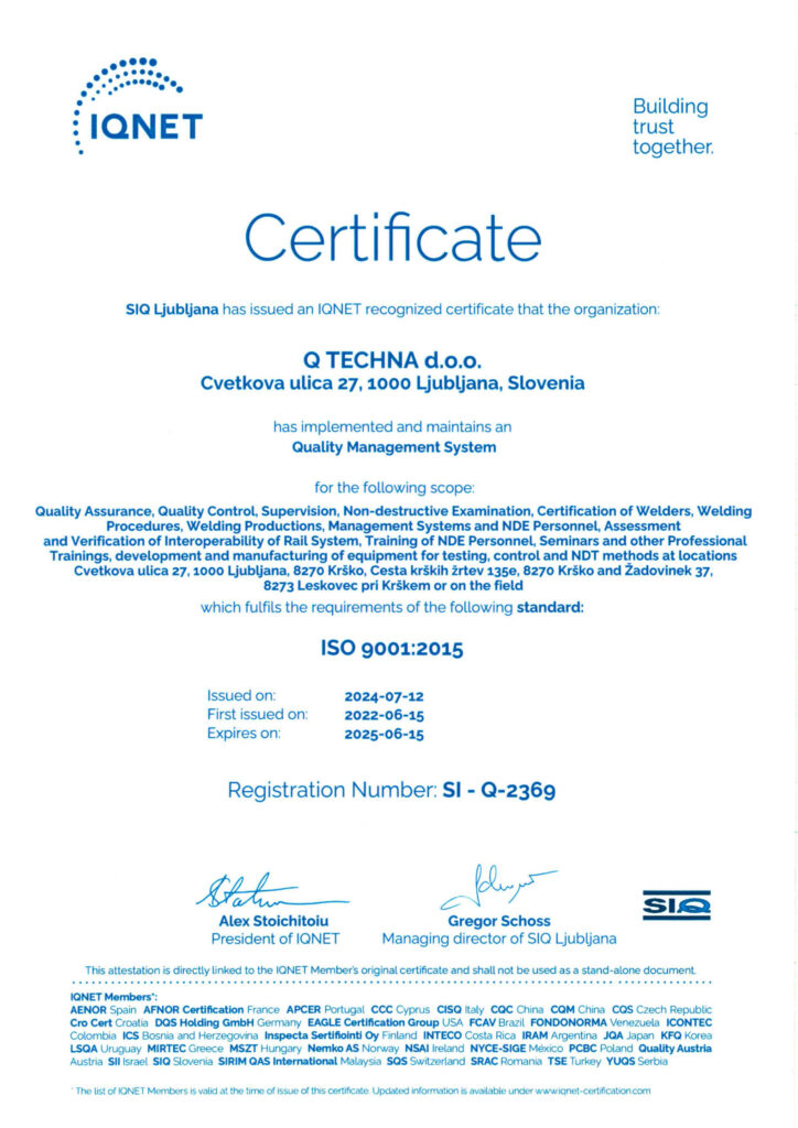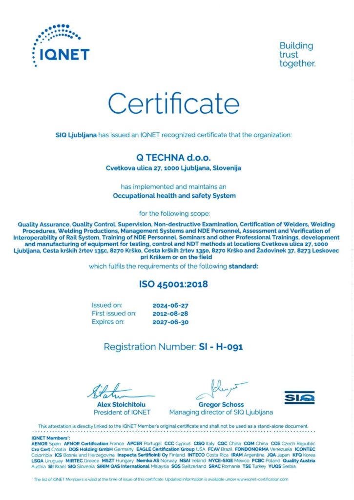 Q Techna ist mit der slowenischen Akkreditierung im: